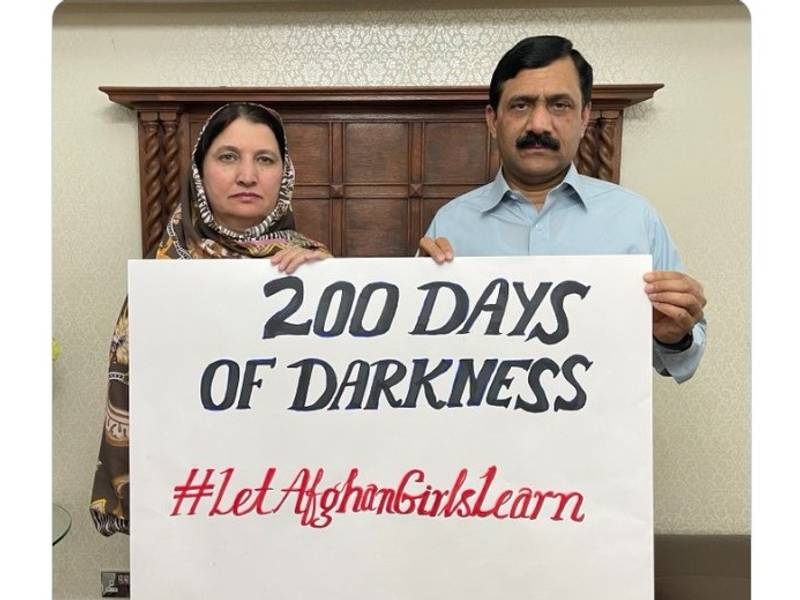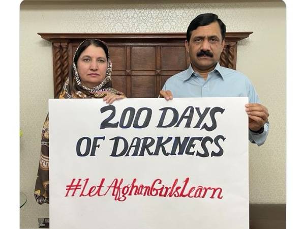 آنان با انتشار عکسی گفتهاند ۲۰۰ روز تعطیلی مکاتب دخترانه، ۲۰۰ روز تاریکی است.