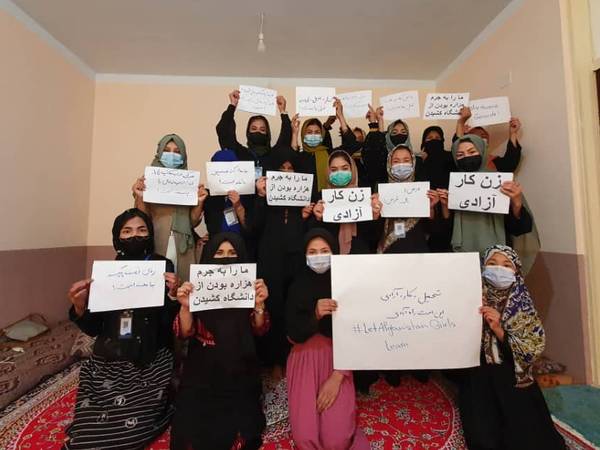 این زنان که در یک مکان سربسته جمع شدهاند همچنین میگویند که طالبان با منع دختران از آموزش وکار، مرتکب "جنایت ضد بشری شده و عاملان این جنایت باید هرچه زودتر محاکمه ومجازات شوند."