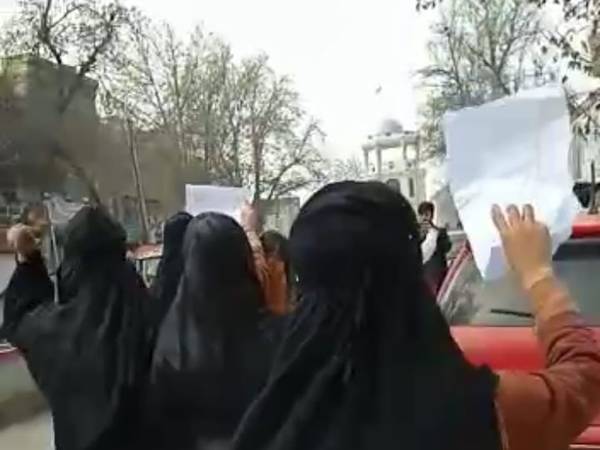 گروهی از زنان تخار قبل از ظهر روز شنبه در اعتراض ممنوعیت آموزش برای زنان تظاهرات کرده بودند.