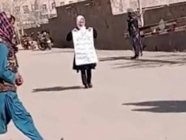 ویدیویی که از حبیبه شریفی نشر شده، نشان میداد که او روز چهارشنبه به تنهایی با لباس سیاه مکتب در مقابل ساختمان ولایت غور ایستاد شد و کاغذ سفید بزرگ حاوی شعار را در اعتراض به سیاستهای تبعیضآمیز طالبان در پیش روی خود آویزان کرد.