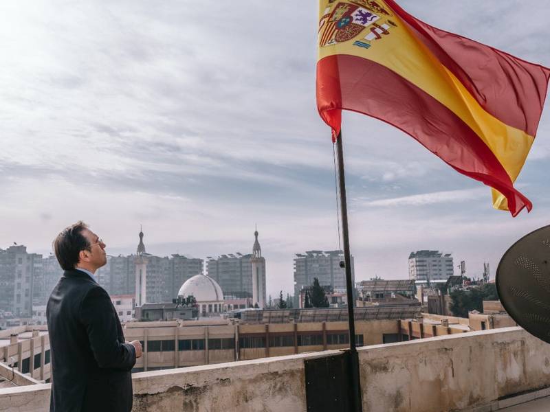وزیر خارجه اسپانیا که در یک سفر رسمی به سوریه رفته است، پنجشنبه، ۲۷ جدی پرچم اسپانیا را در سفارت این کشور در دمشق برافراشت و از دور جدید روابط میان این دو کشور خبر داد. او با بازگشایی سفارت در دمشق گفت: «برافراشتن دوباره پرچم اسپانیا، امیدی است که به آینده سوریه داریم».
