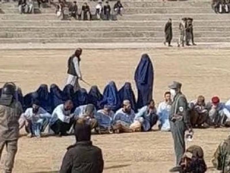 طالبان بهرغم خواست سازمانهای بینالمللی مبنی بر توقف شکنجه و مجازات بدنی متهمان، به شلاق زدن و اعدام افراد در ملاء عام ادامه داده است. این گروه شیوه مجازات خود را اجرای «دستور شریعت اسلامی» مینامد.