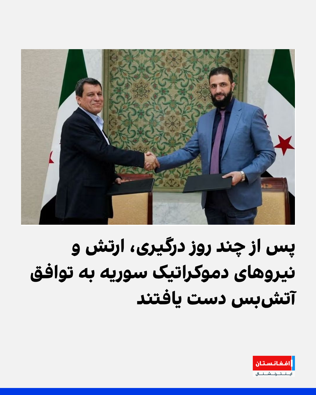 هدف توافق مارچ که با میانجیگری امریکا پس از سرنگونی بشار اسد در دسامبر حاصل شد، ادغام نیروهای کرد در ساختار دولتی و واگذاری داراییهای کلیدی از جمله گذرگاههای مرزی، یک فرودگاه و میادین نفت و گاز به دمشق تا پایان سال بود. با این حال، روند اجرای این توافق بهدلیل اتهامزنیهای متقابل متوقف شده است.
