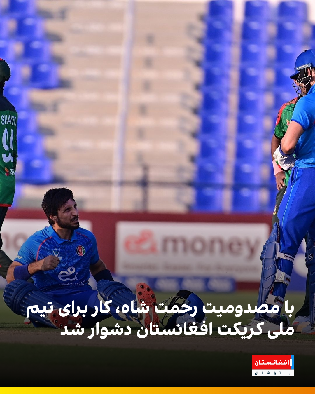 در جریان دیدار دوم از سه بازی بینالمللی یکروزه میان افغانستان و بنگلادیش، رحمت شاه زرمتی، توپزن تیم ملی کریکت افغانستان، دچار مصدومیت شد. او هنگام بازی از ناحیه مچ پای چپ احساس درد و ناچار زمین را ترک کرد. مصدومیت این بازیکن برای ببرهای آبی گران تمام شد.