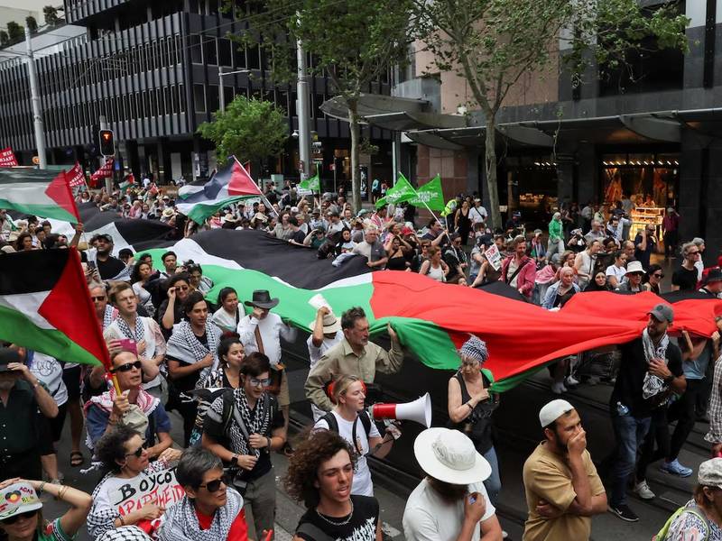 مقامهای پولیس اعلام کردند که حدود پنج هزار معترض در این راهپیمایی شرکت کردند. معترضان خواستار پایان جنگ در غزه و کشتار فلسطینیها شدند. بسیاری از آنها پرچمهای فلسطین را به دست داشتند و علیه جنگ در غزه شعار سر میدادند.