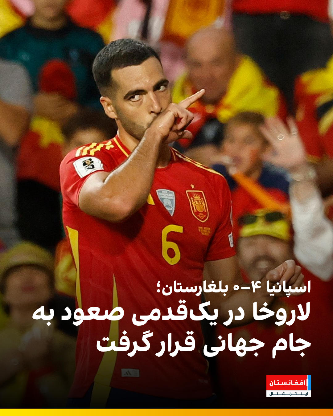تیم ملی فوتبال اسپانیا با پیروزی قاطع ۴–۰مقابل بلغارستان، یک گام دیگر به صعود به جام جهانی ۲۰۲۶نزدیک شد. این دیدار از مرحله چهارم رقابتهای مقدماتی جام جهانی با میزبانی اسپانیا در شهر وایادولید برگزار شد و شاگردان لوئیس دلا فوئنته با درخشش میکل مرینو پیروز شدند.