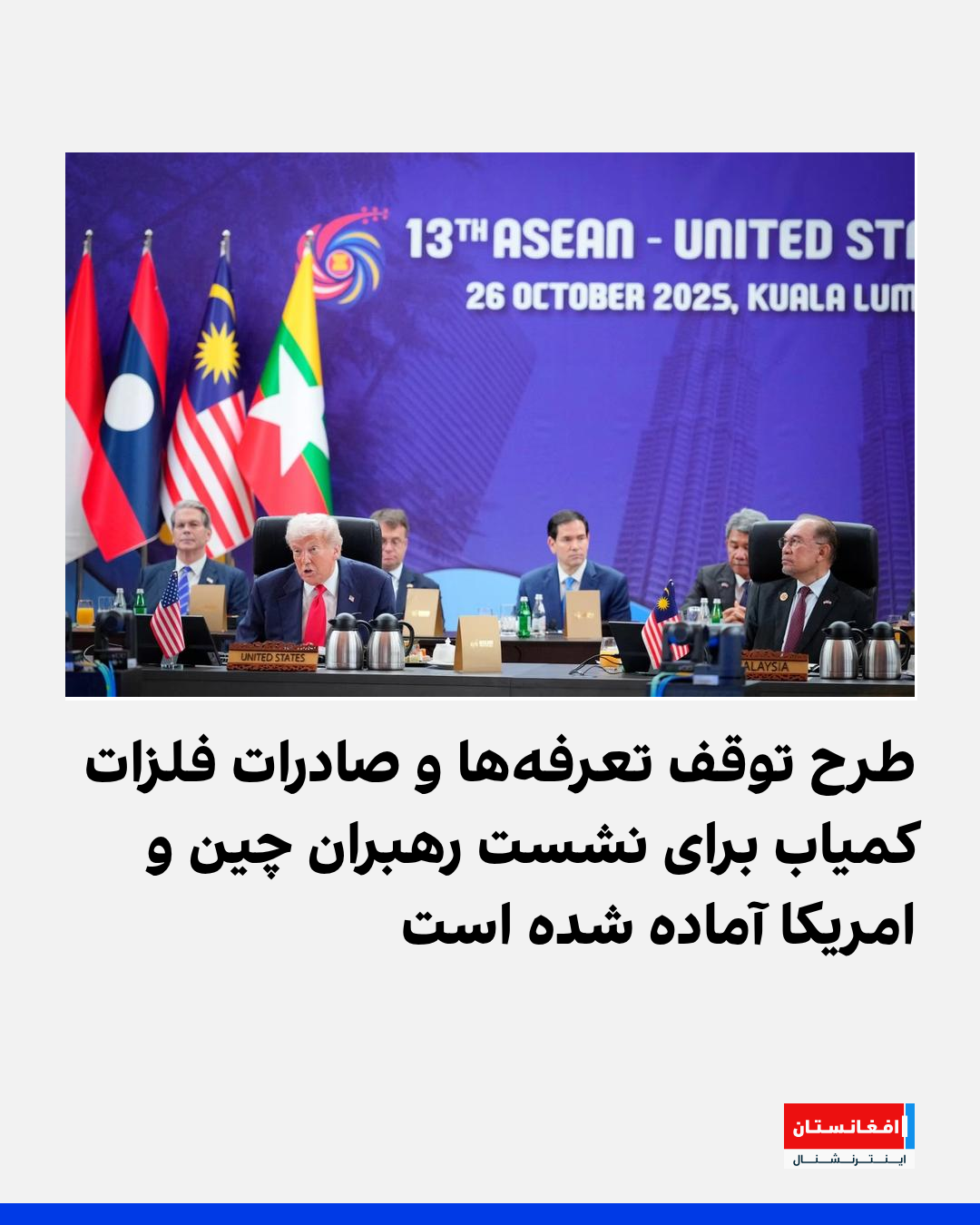 اسکات بسنت، وزیر خزانهداری ایالات متحده، گفت که مذاکرات در حاشیه اجلاس اتحادیه کشورهای جنوب شرق آسیا با آسهآن در کوالالامپور، اجرای تعرفههای صد درصدی امریکا بر واردات چین را که از ۱۰ عقرب اجرا میشد، از بین برده است.