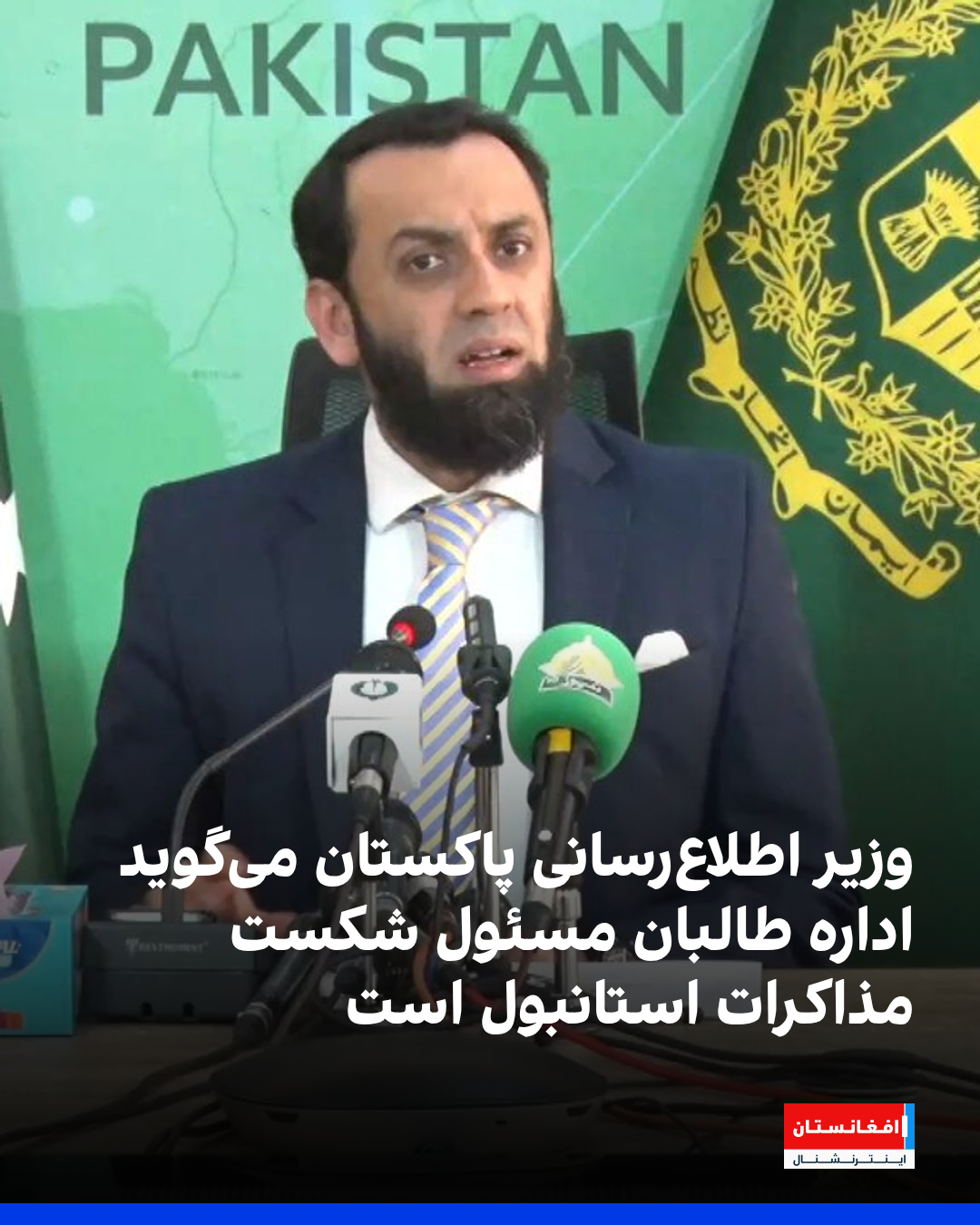 عطاءالله تارر، وزیر اطلاعات و رسانههای پاکستان، روز چهارشنبه در مصاحبهای گفت که 'رژیم طالبان' مسئول شکست مذاکرات چهار روزه استانبول است. طالبان این روایت از مذاکرات استانبول را رد کرده است.