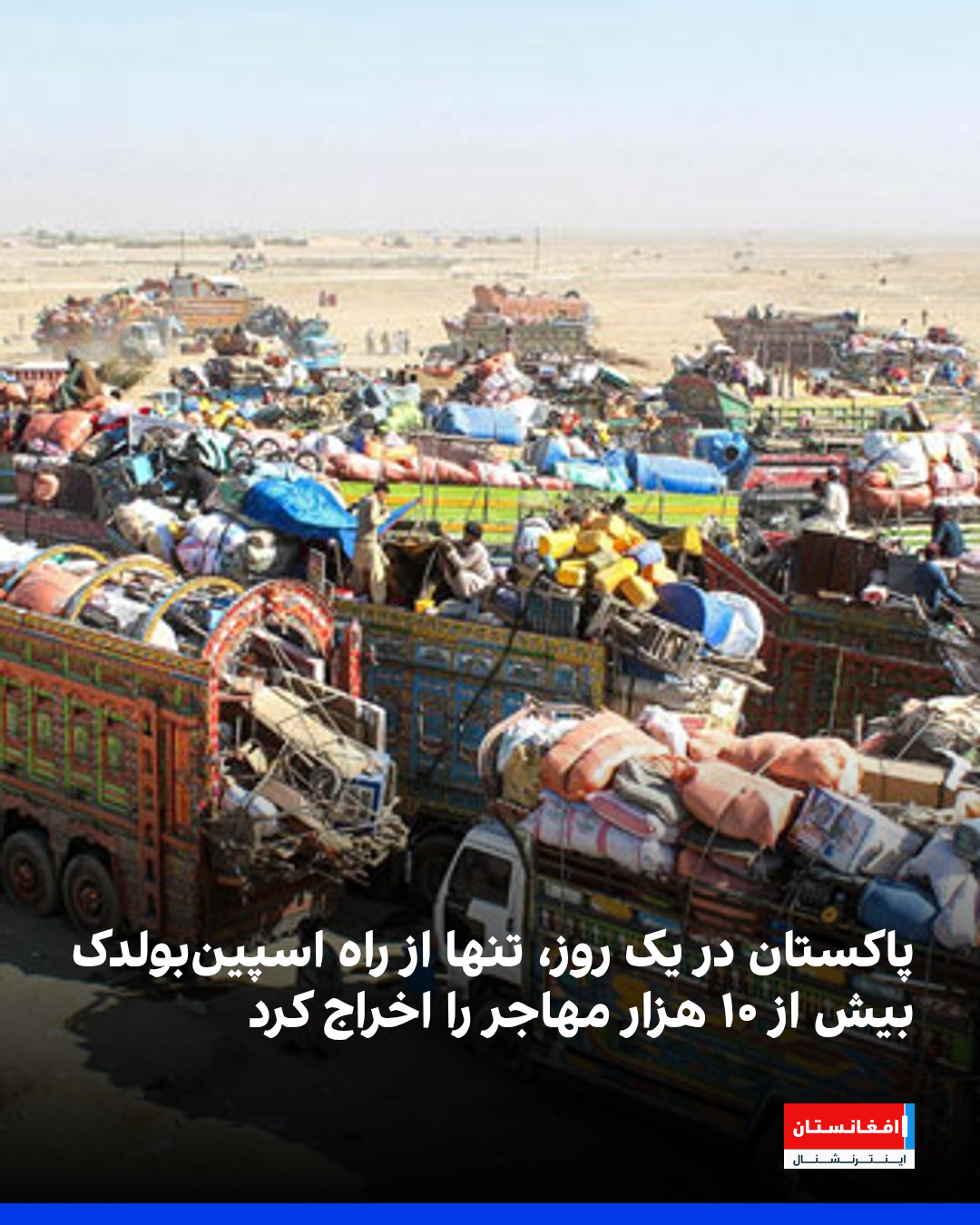 جیونیوز به نقل از منابع رسمی پاکستانی گزارش داد که در یک روز ۱۰ هزار و ۷۰۰ مهاجر افغان تنها از گذرگاه چمن- بولدک به افغانستان اخراج شدند. پاکستان روز شنبه گذرگاه تورخم را نیز فقط برای اخراج مهاجران باز کرد اما به کاروانهای بازرگانی و بیماران اجازه تردد نداد.