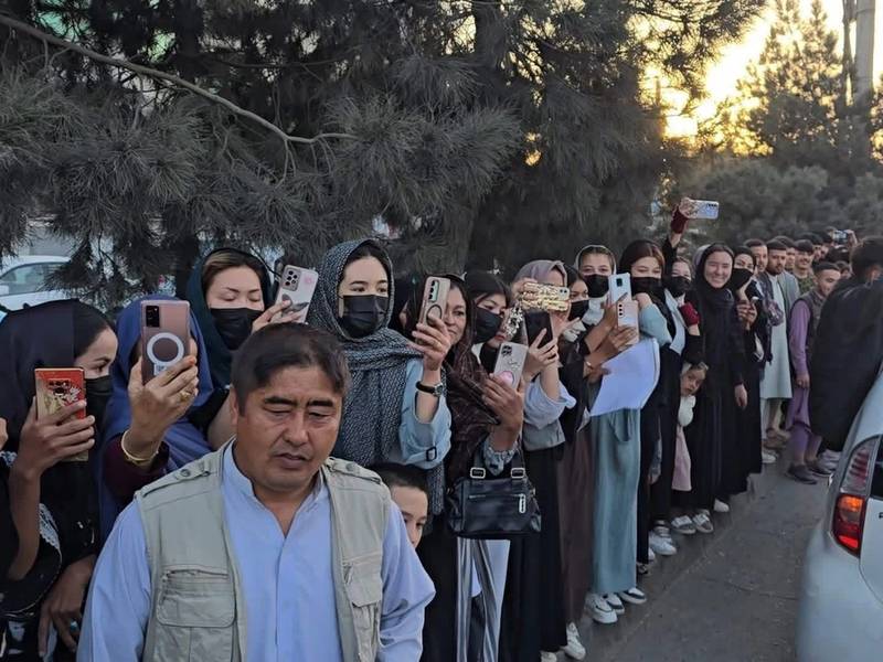تصاویر نشان میدهند که خیابانهای پایتخت مملو از جمعیت است و زنان و مردان در کنار هم صف کشیدهاند؛ رخدادی که پس از تسلط طالبان بر افغانستان کسی نظیرش را در خیابانهای کابل ندیده است.