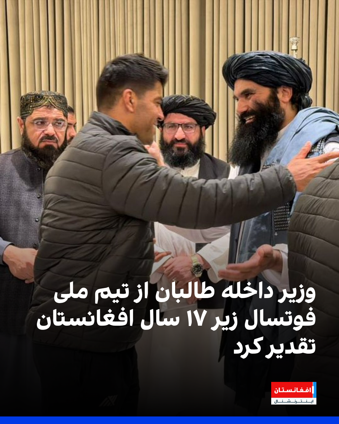 وزیر داخله طالبان از اعضای تیم ملی فوتسال زیر ۱۷ سال افغانستان که اخیراً در رقابتهای آسیایی موفق به کسب قهرمانی شدهاند، دیدار و تقدیر کرده است.