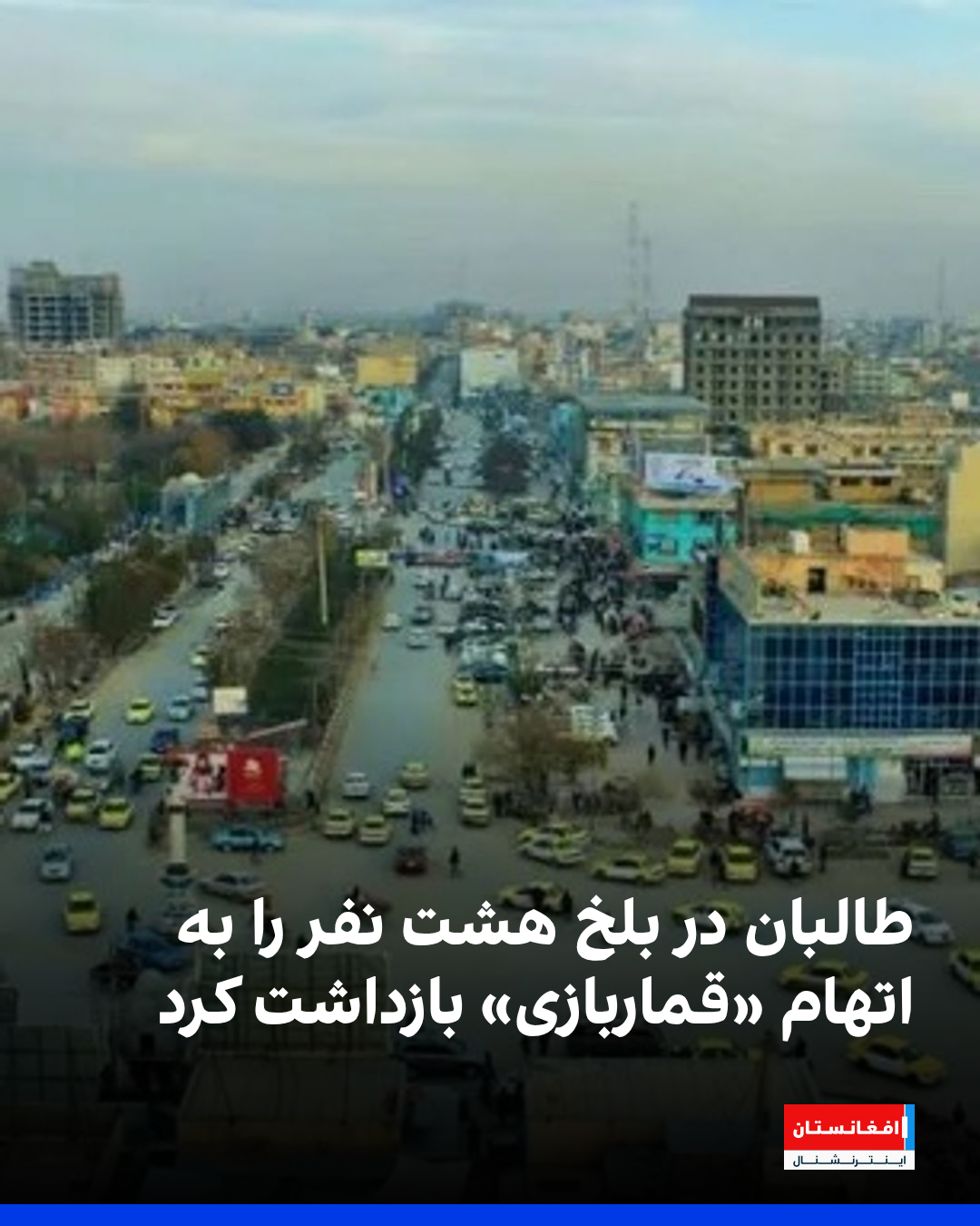 فرماندهی امنیه طالبان در بلخ میگوید هشت نفر را به ظن آنچه «قماربازی» خوانده، در حوزه ششم شهر مزارشریف بازداشت کرده است. بهگفته طالبان، از نزد این افراد ۵۰۰ دالر، ۵۰ یورو و ۴۲ هزار افغانی بهدست آمده است.