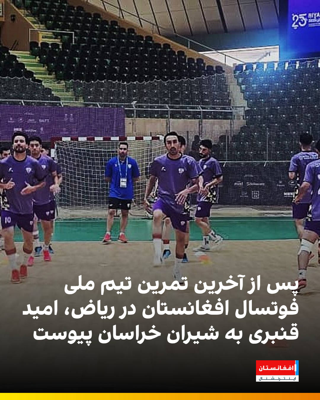 تیم ملی فوتسال افغانستان امروز آخرین تمرین خود را پیش از آغاز مسابقات فوتسال ششمین دور بازیهای همبستگی کشورهای اسلامی، در ورزشگاه «گرینهال» شهر ریاض عربستان سعودی برگزار کرد. امید قنبری، بازیکن شیران خراسان نیز پس از چاشت امروز از کابل وارد ریاض شد و به جمع بازیکنان پیوست.