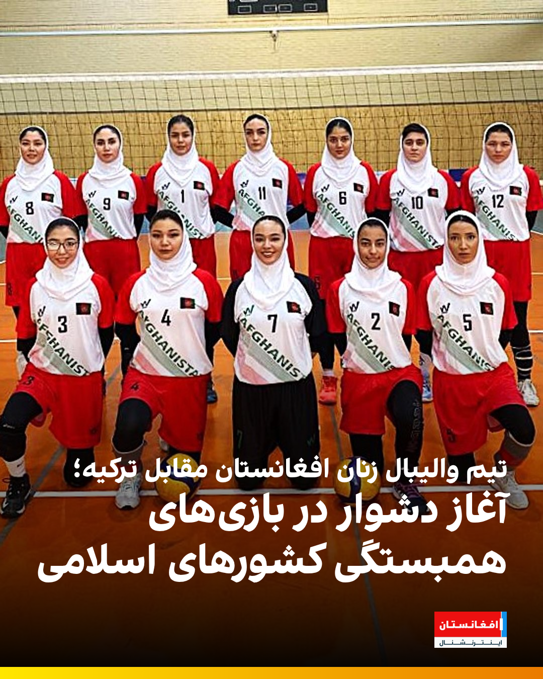 مسابقات والیبال زنان در ششمین دور بازیهای همبستگی کشورهای اسلامی، از فردا (سهشنبه، ۱۳ عقرب ۱۴۰۴) در شهر ریاض عربستان آغاز میشود. تیم والیبال دختران افغانستان در نخستین دیدار، ساعت ۵:۳۰ بعد از چاشت به وقت افغانستان، به مصاف تیم زنان ترکیه، قدرتمندترین تیم این مسابقات میرود.