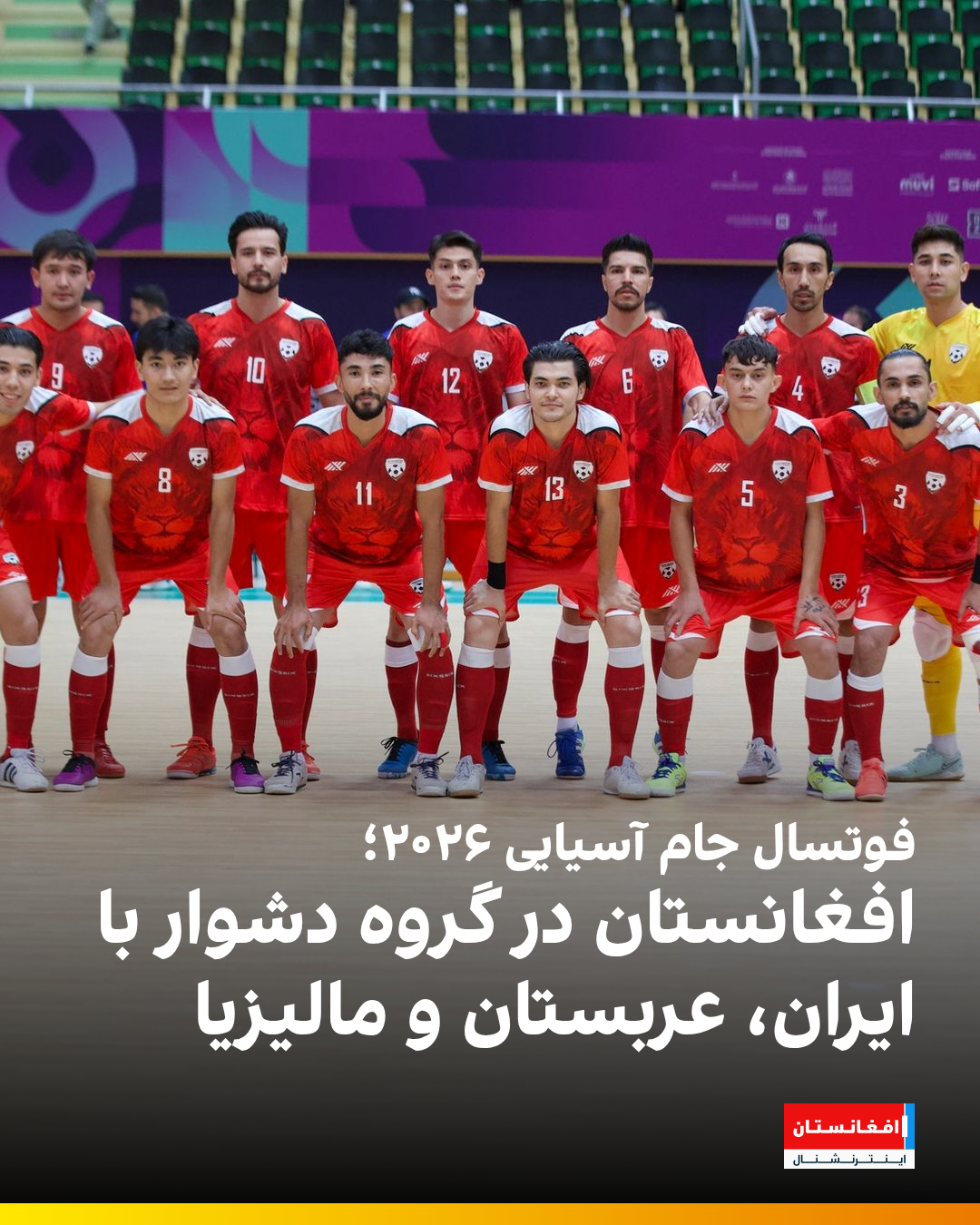 قرعهکشی مسابقات فوتسال جام آسیایی ۲۰۲۶ برگزار شد و تیم ملی فوتسال افغانستان در گروه چهارم با تیمهای ایران، عربستان سعودی و مالیزیا همگروه شد. مرحله نهایی این رقابتها با حضور ١٦ تیم از تاریخ ۷ تا ۱۸ دلو ۱۴۰۴ (برابر با ۲۷ جنوری تا ۷ فبروری ۲۰۲۶) در اندونیزیا برگزار خواهد شد.
