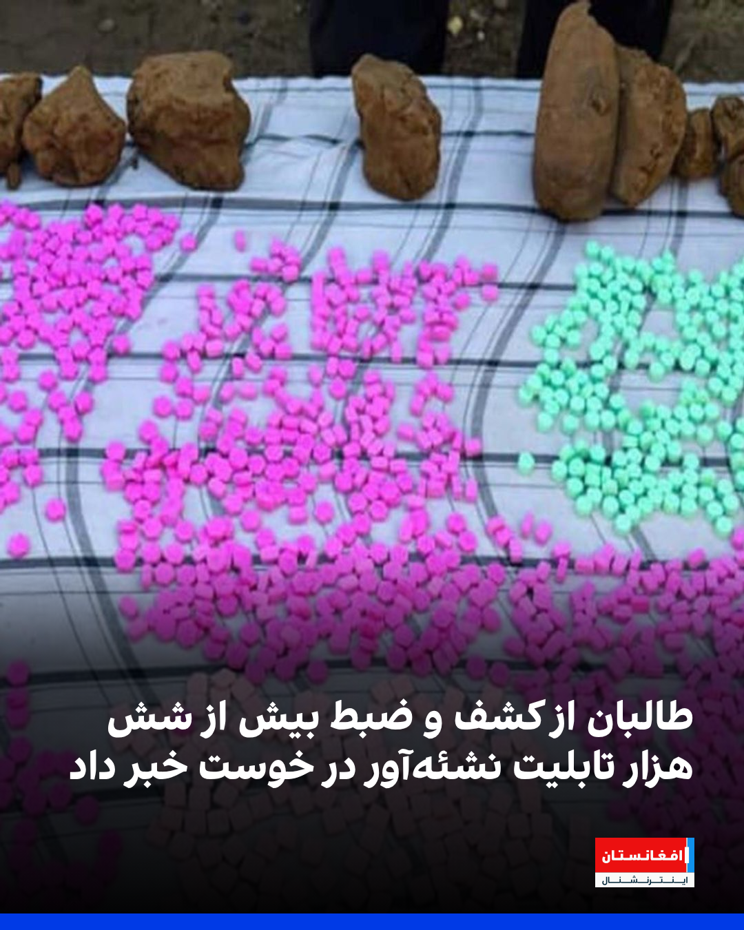 وزارت داخله طالبان میگوید که در ولایت خوست ۶ هزار و ۳۷۰ تابلیت نشئهآور را کشف و ضبط کرده است. این وزارت نوشت که هفت نفر در پیوند به این پرونده بازداشت و دو عراده موتر آنها نیز ضبط شده است.