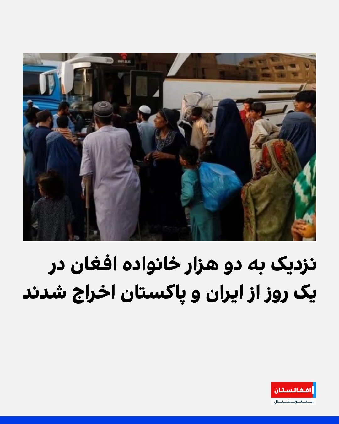 خبرگزاری باختر، رسانه دولتی تحت کنترول طالبان روز شنبه ۱۶ عقرب گزارش داد که هزار و ۷۴۴ خانواده مهاجر افغان در یک شبانهروز از پاکستان و ۶۵ خانواده از ایران اخراج شدهاند.