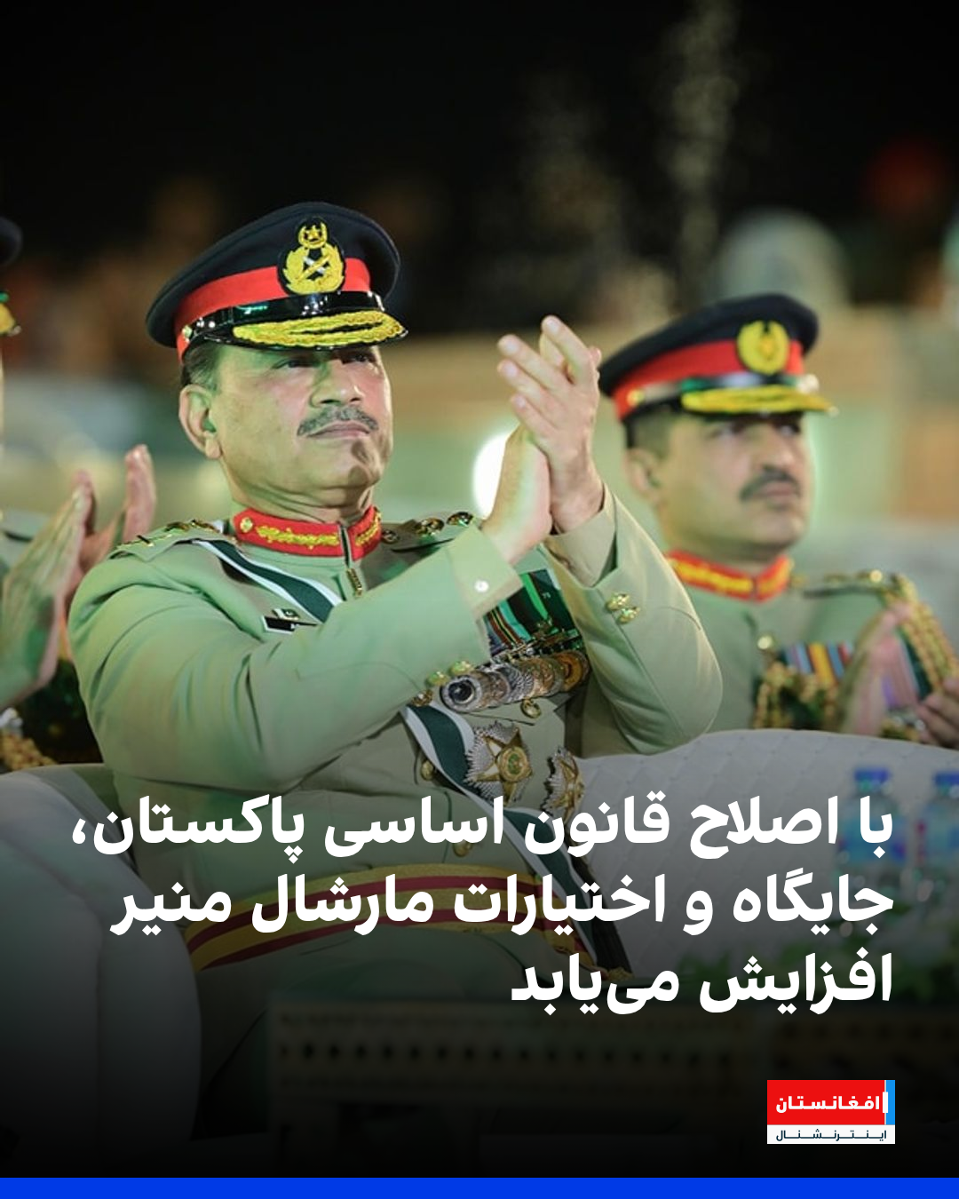 مجلس سنای پاکستان روز دوشنبه، ۱۹ عقرب اصلاحیه قانون اساسی را تصویب کرد که بر اساس آن نقش و اختیارات مارشال عاصم منیر، فرمانده ارتش پاکستان، افزایش خواهد یافت. منتقدان هشدار دادهاند که این اقدام دموکراسی را تضعیف خواهد کرد.
