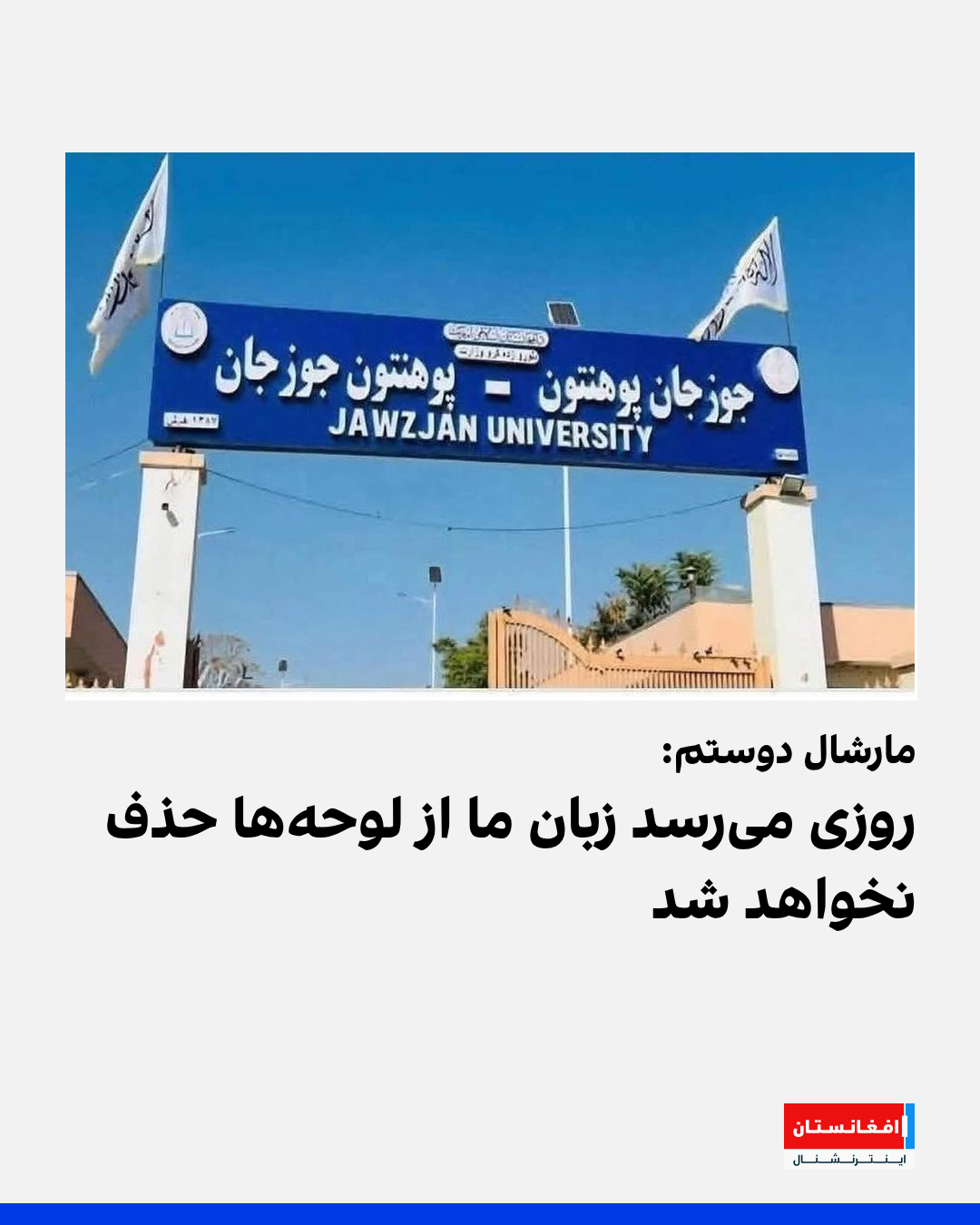 عبدالرشید دوستم، رهبر جنبش ملی افغانستان، در واکنش به حذف متن اوزبیکی از لوحه دانشگاه جوزجان، طالبان را متهم کرد که زبان و هویت اوزبیکی را حذف میکند.