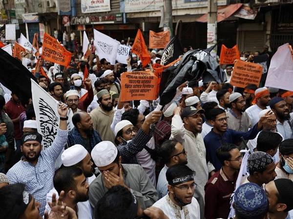 جمعیت گسترده معترض در داکا شامل رهبران سیاسی و واعظان برجسته اسلامی از هند، پاکستان، عربستان سعودی و مصر میشوند.