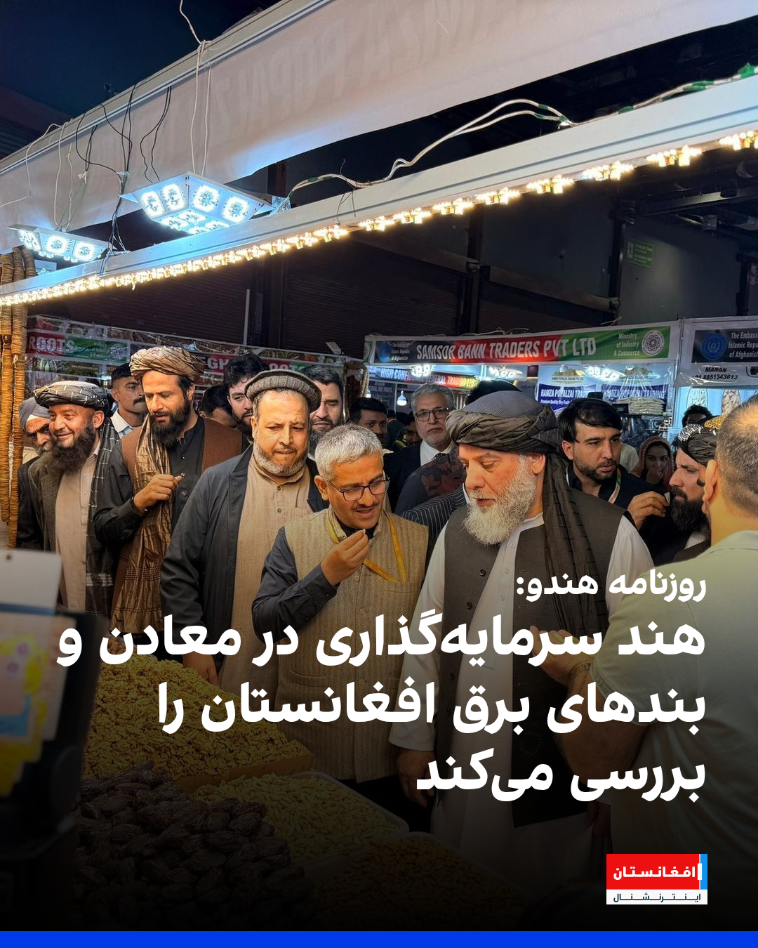 همزمان با سفر نورالدین عزیزی، وزیر تجارت طالبان به دهلینو، منابع دیپلوماتیک هندی گفتهاند که این کشور سرمایهگذاری در معادن و پروژههای برقآبی افغانستان را بررسی میکند.