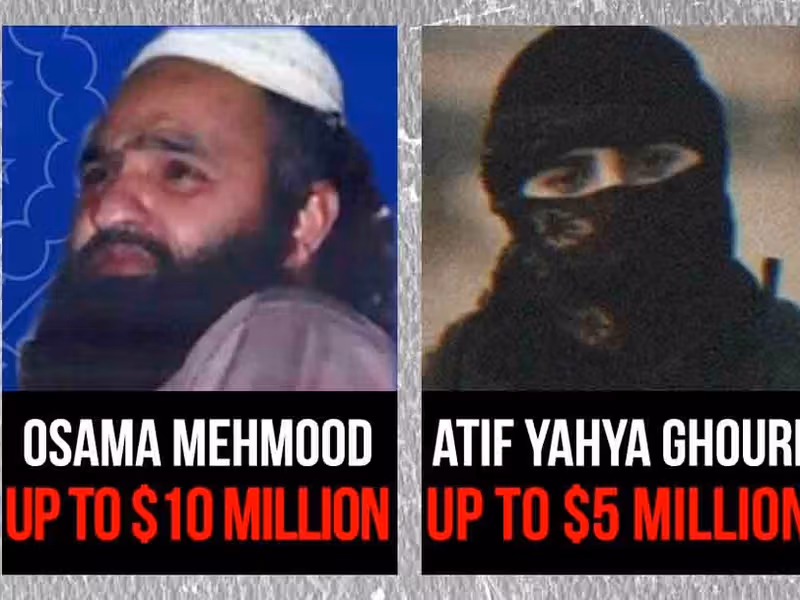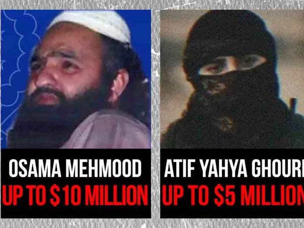 امریکا برای ارائه اطلاعات درباره اسامه محمود، رهبر شاخه شبهقاره هند القاعده ۱۰ میلیون دالر و درباره عاطف یحیی غوری، پنج میلیون دالر تعیین کرده است.