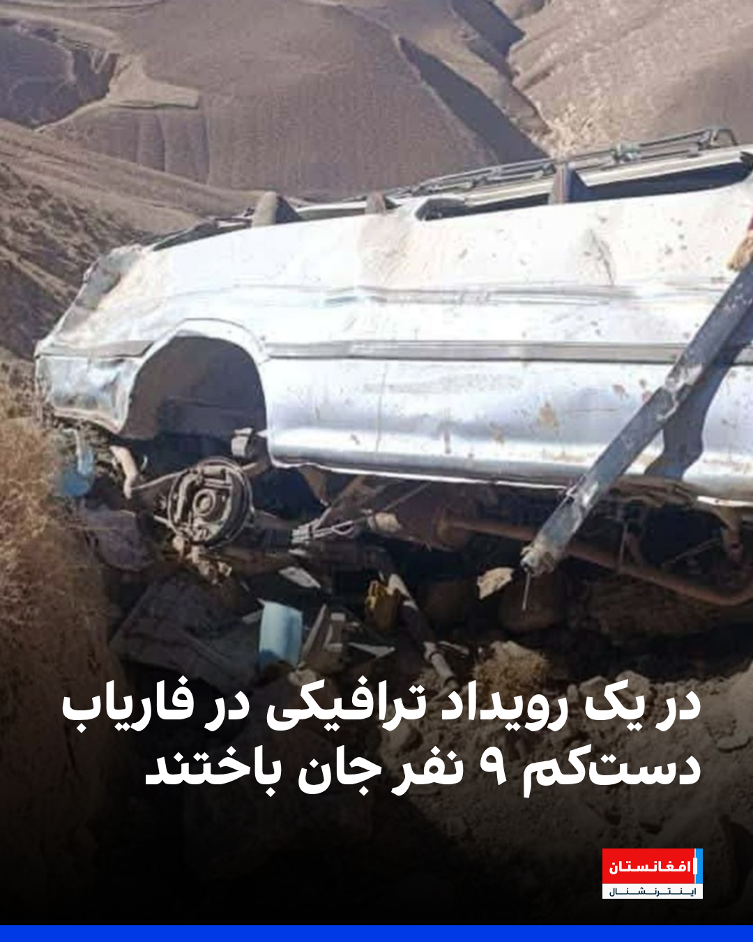 ریاست اطلاعات و فرهنگ طالبان در فاریاب گزارش داد که در یک رویداد ترافیکی در ولسوالی پشتونکوت ۹ نفر به شمول زنان و کودکان جان باختند و ۱۶ نفر دیگر زخمی شدند.