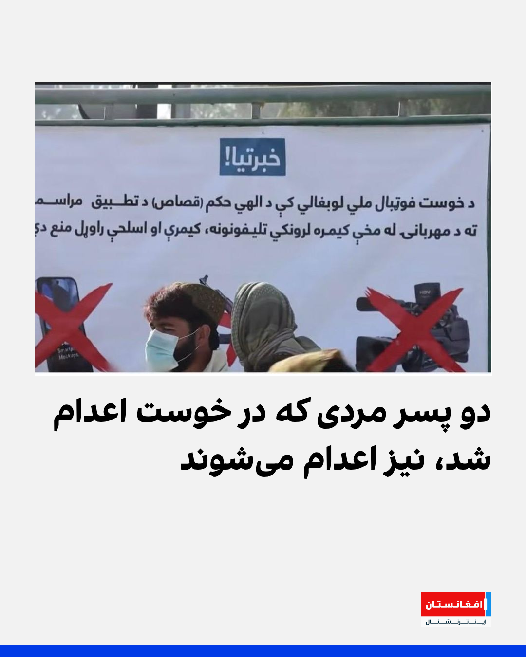 سخنگوی والی طالبان در خوست اعلام کرد که حکم اعدام برای دو پسر مردی که روز سه شنبه، ۱۱ قوس در این ولایت اعدام شد، نیز صادر شده است.