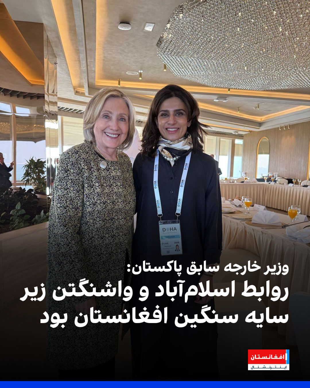 حنا ربانی کهر، وزیر خارجه سابق پاکستان در حاشیه بیستوسومین همایش دوحه با هیلاری کلینتون، وزیر خارجه سابق امریکا دیدار کرد.