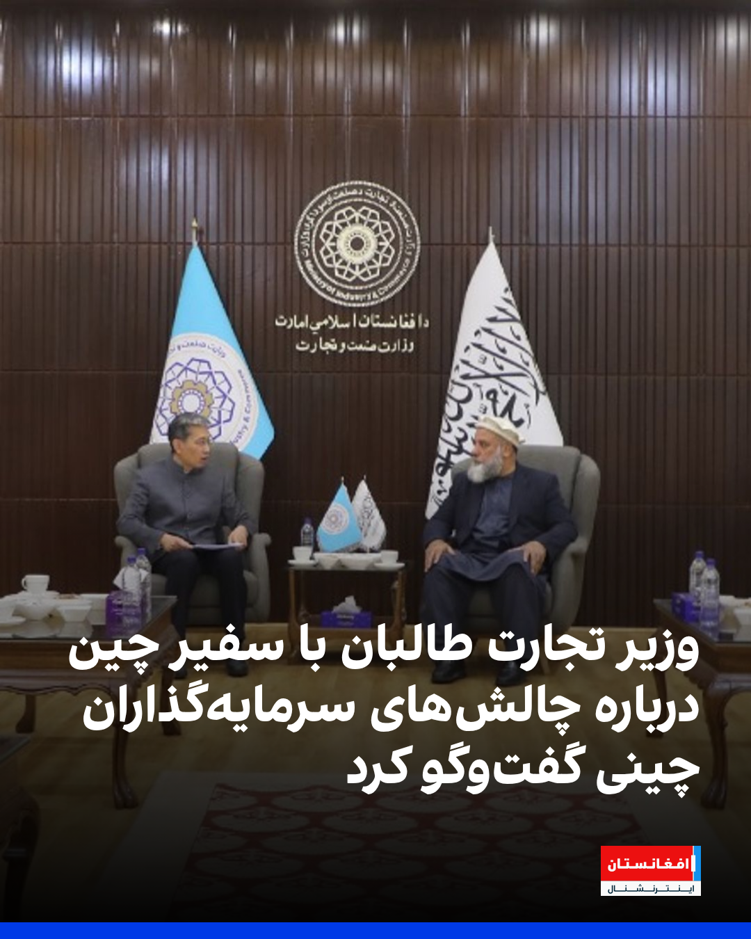 نورالدین عزیزی، وزیر تجارت و صنعت طالبان در دیدار با ژاو شینگ، سفیر چین در کابل، درباره چالشهای سرمایهگذاران چینی در افغانستان گفتوگو کرده است.