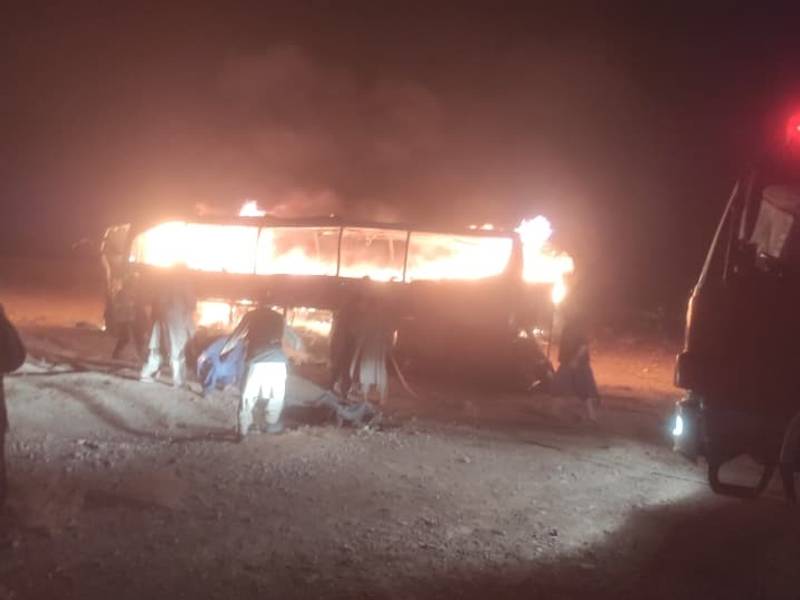 The crash happened Monday on the Herat–Islam Qala road in Guzara district, Taliban authorities said. The bus, travelling from Islam Qala toward Kabul, burst into flames after hitting a motorcycle and then a fuel truck. Three survivors were critically injured.