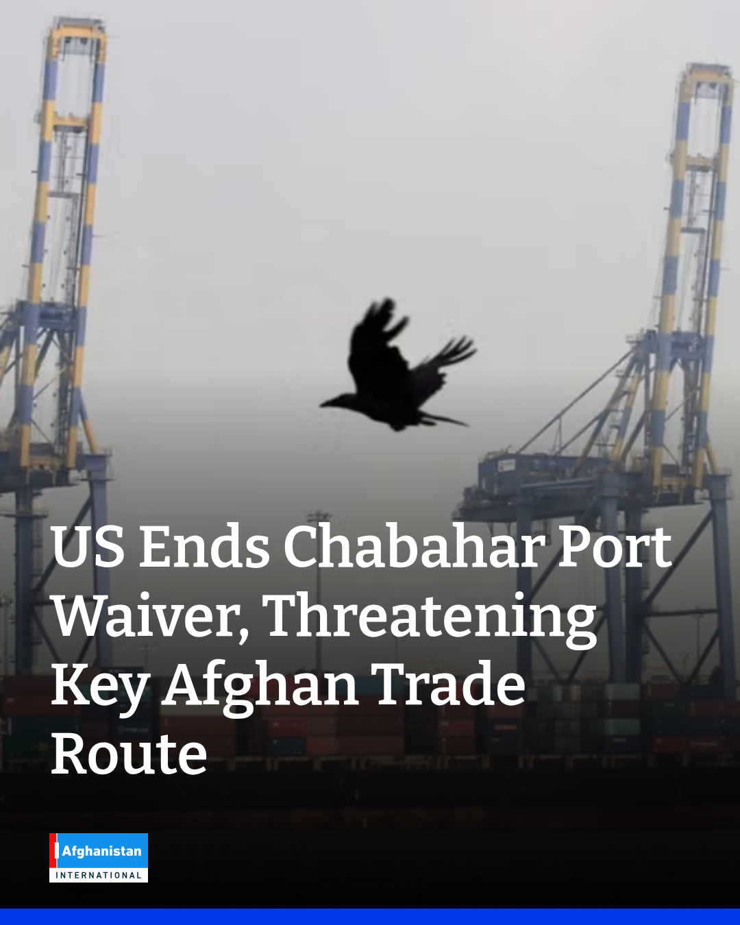 The United States will revoke Iran’s Chabahar Port sanctions exemption on Sept. 29, a move that could cut off Afghanistan’s most important alternative trade route and stall India’s multimillion-dollar investments in the facility.