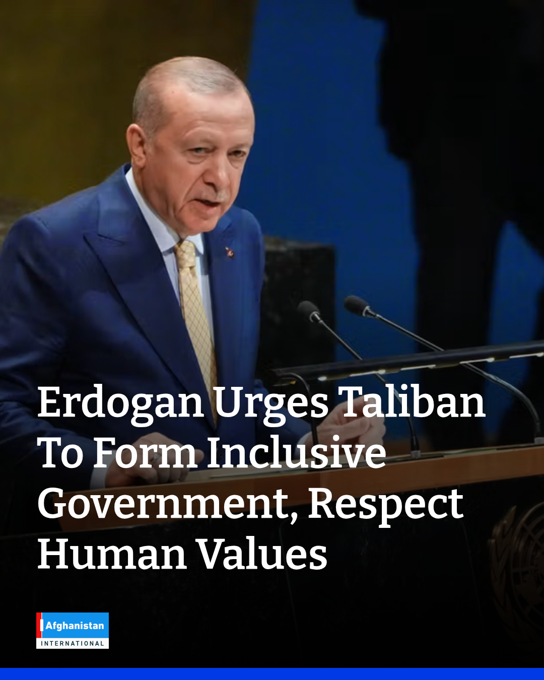 Turkish President Recep Tayyip Erdogan on Tuesday urged the Taliban to adopt an inclusive approach to governance and to respect human values, while calling on the international community not to abandon the Afghan people.