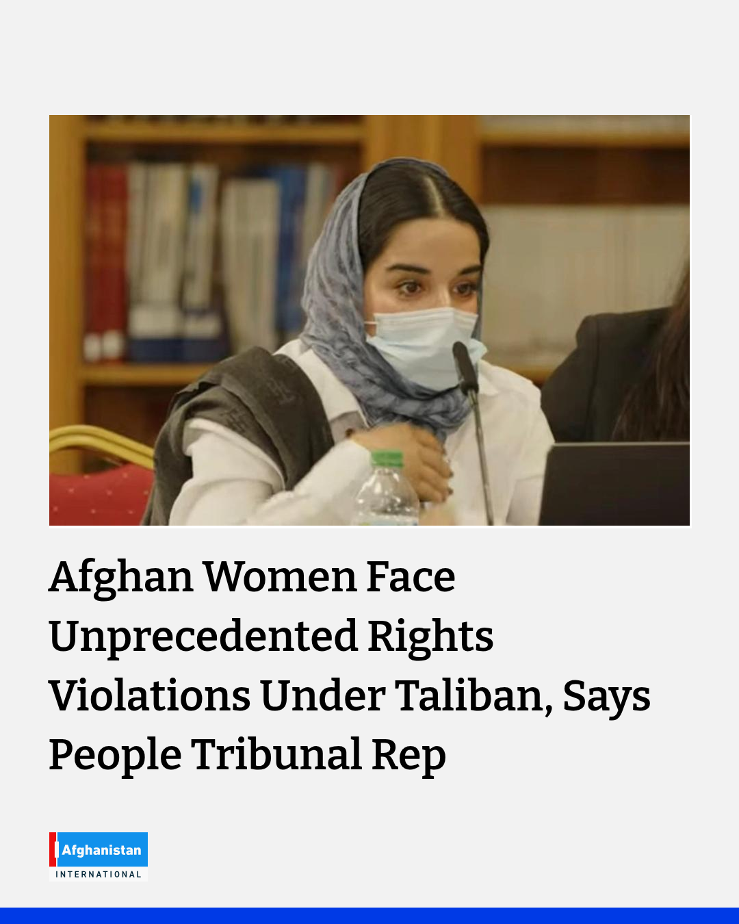 A representative of the tribunal’s secretariat said the Taliban, by defining women as “the other” and “the enemy,” have subjected Afghan women to widespread, systemic abuses that have rendered them voiceless and exposed them to the most extreme forms of mistreatment.