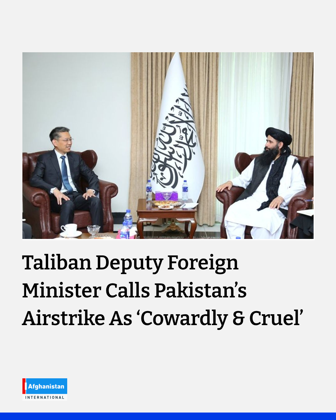 Taliban Deputy Foreign Minister Naeem Wardak has condemned Pakistan’s recent airstrike on Afghan territory, calling it “cowardly and cruel,” during a meeting with China’s ambassador to Kabul, Zhao Xing.