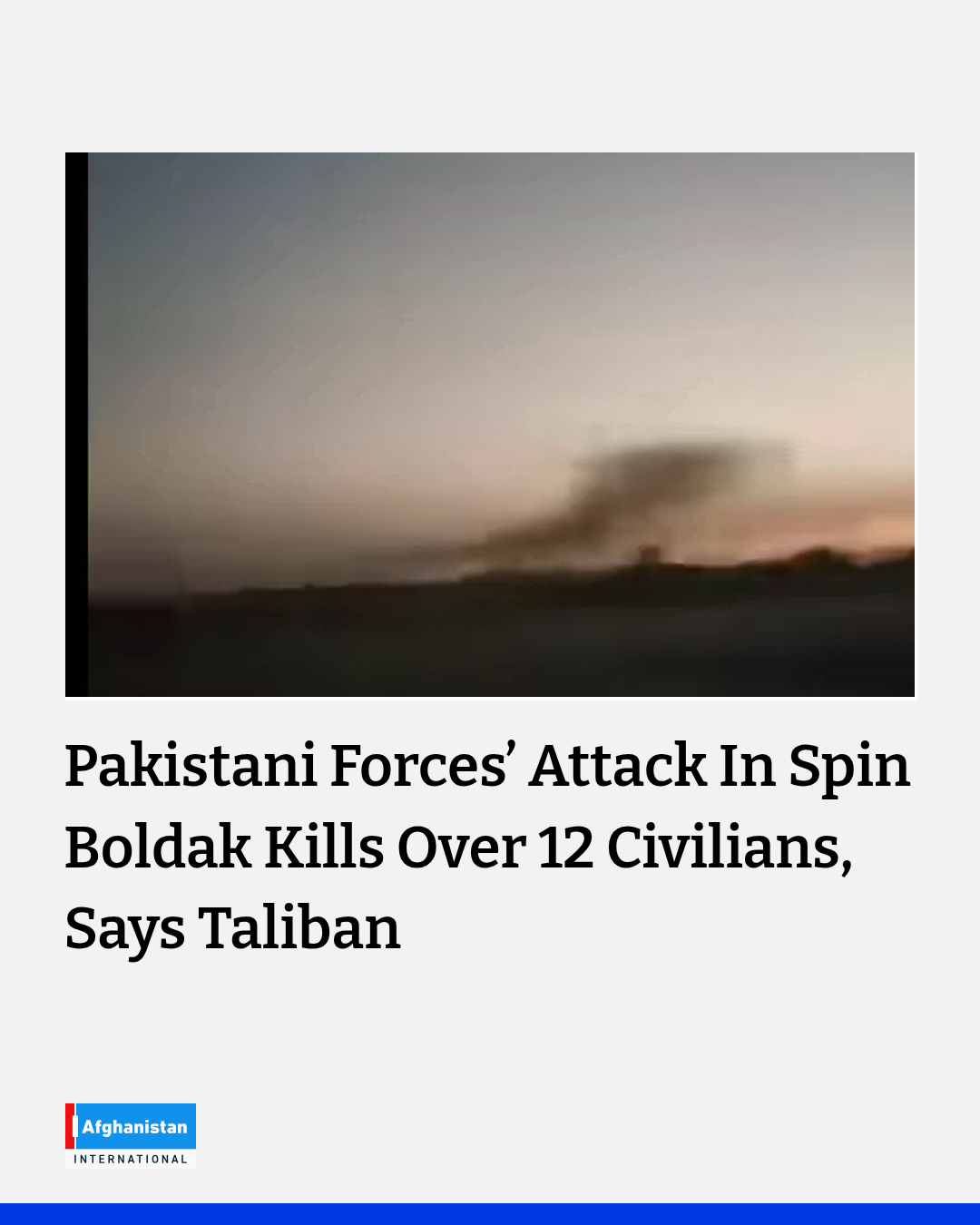 The Taliban claimed on Wednesday that more than 12 civilians were killed and over 100 others wounded in what it described as attacks by Pakistani forces on Spin Boldak district in Kandahar province.
