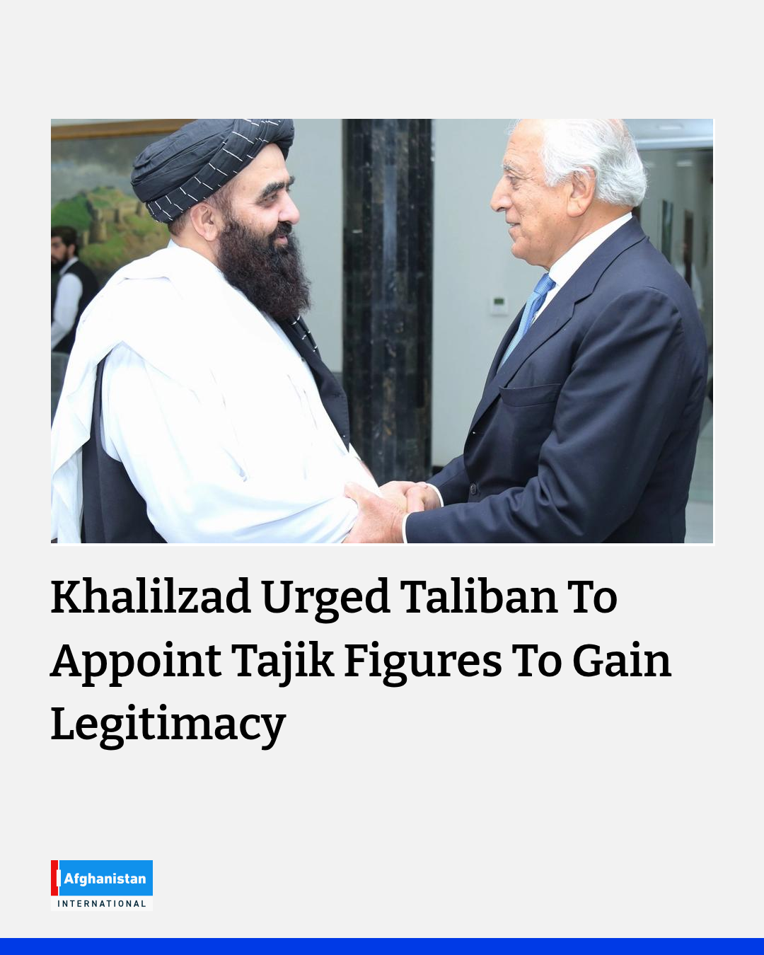 Former US envoy Zalmay Khalilzad has reportedly urged the Taliban to appoint “a few Tajik figures” to senior positions in their administration in an effort to boost the group’s domestic and international legitimacy, sources told Afghanistan International.