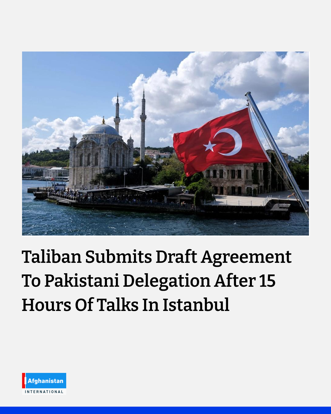 The Taliban have submitted a draft agreement to the Pakistani delegation after 15 hours of talks in Istanbul, outlining proposals to strengthen the ceasefire and prevent cross-border hostilities, informed sources told Afghanistan International.