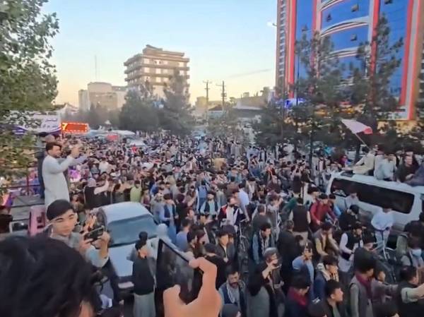 Footage obtained by Afghanistan International showed tens of thousands of people including many women waving flags and chanting in support of the national team in Dasht-e-Barchi.