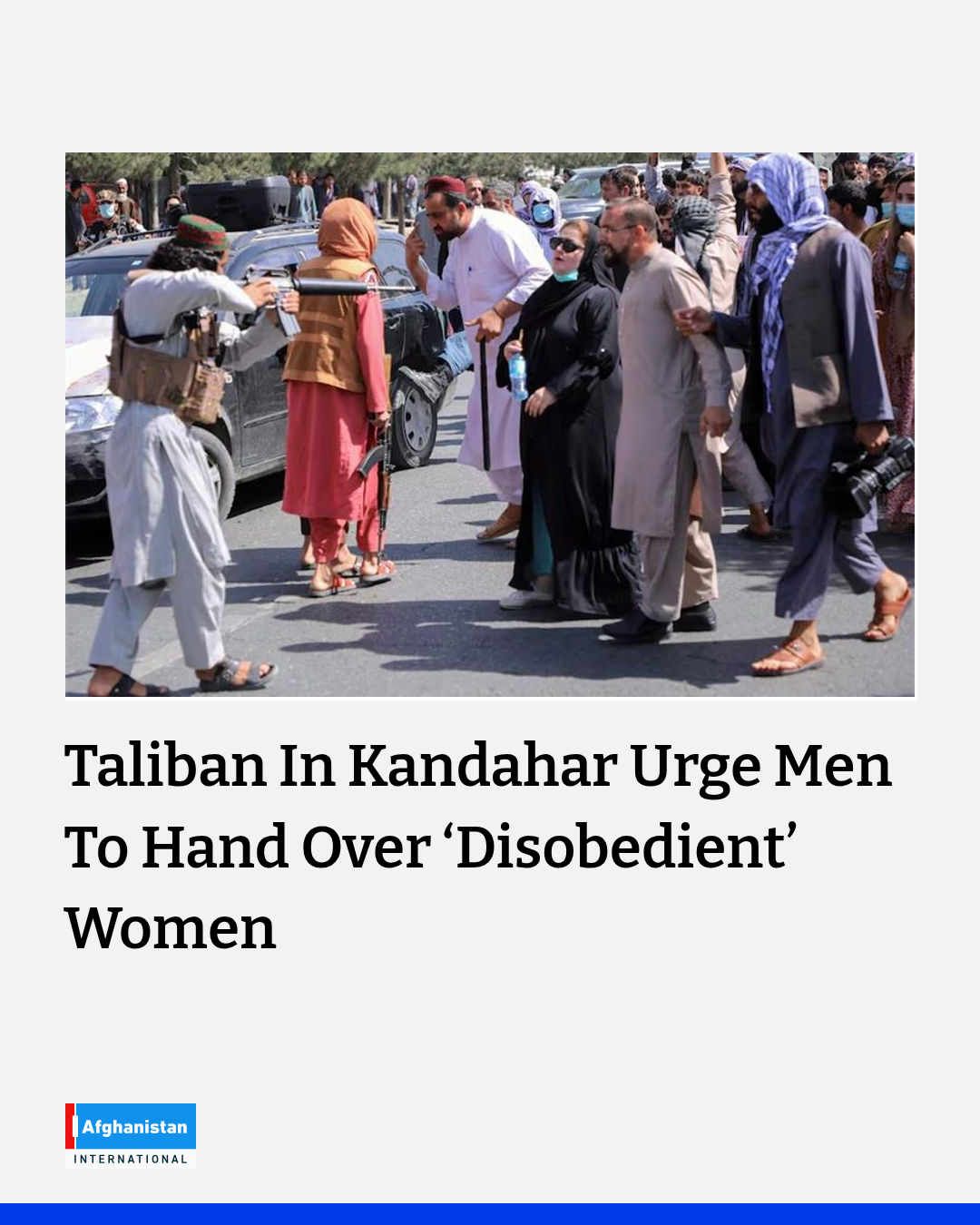 Taliban morality officers in Kandahar are instructing men to hand over women who “disobey” them so they can be “corrected,” according to local residents.
