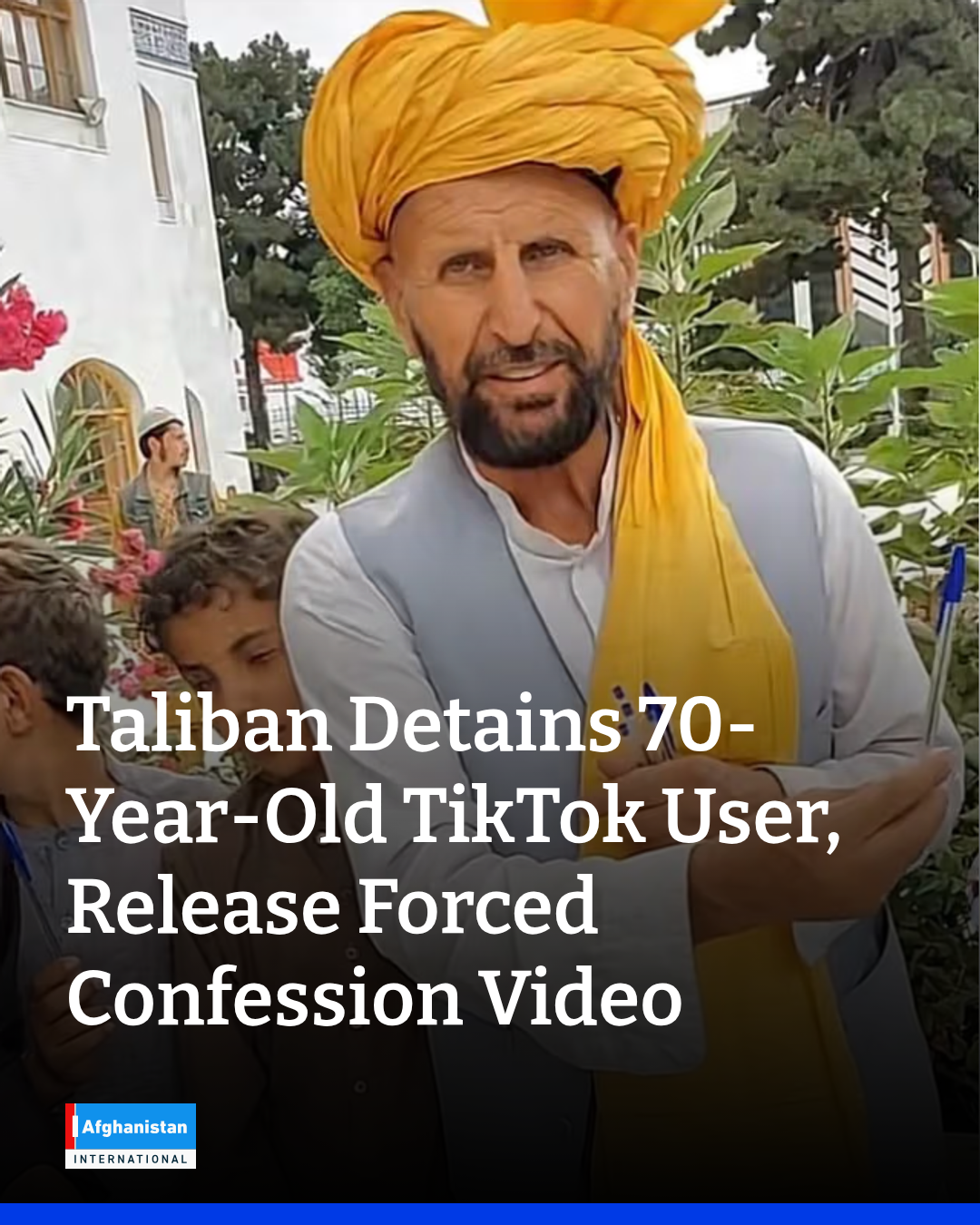 The Taliban’s Ministry for the Promotion of Virtue and Prevention of Vice has detained a 70-year-old TikTok user, Malik Akbar, and released a video of his forced confession.