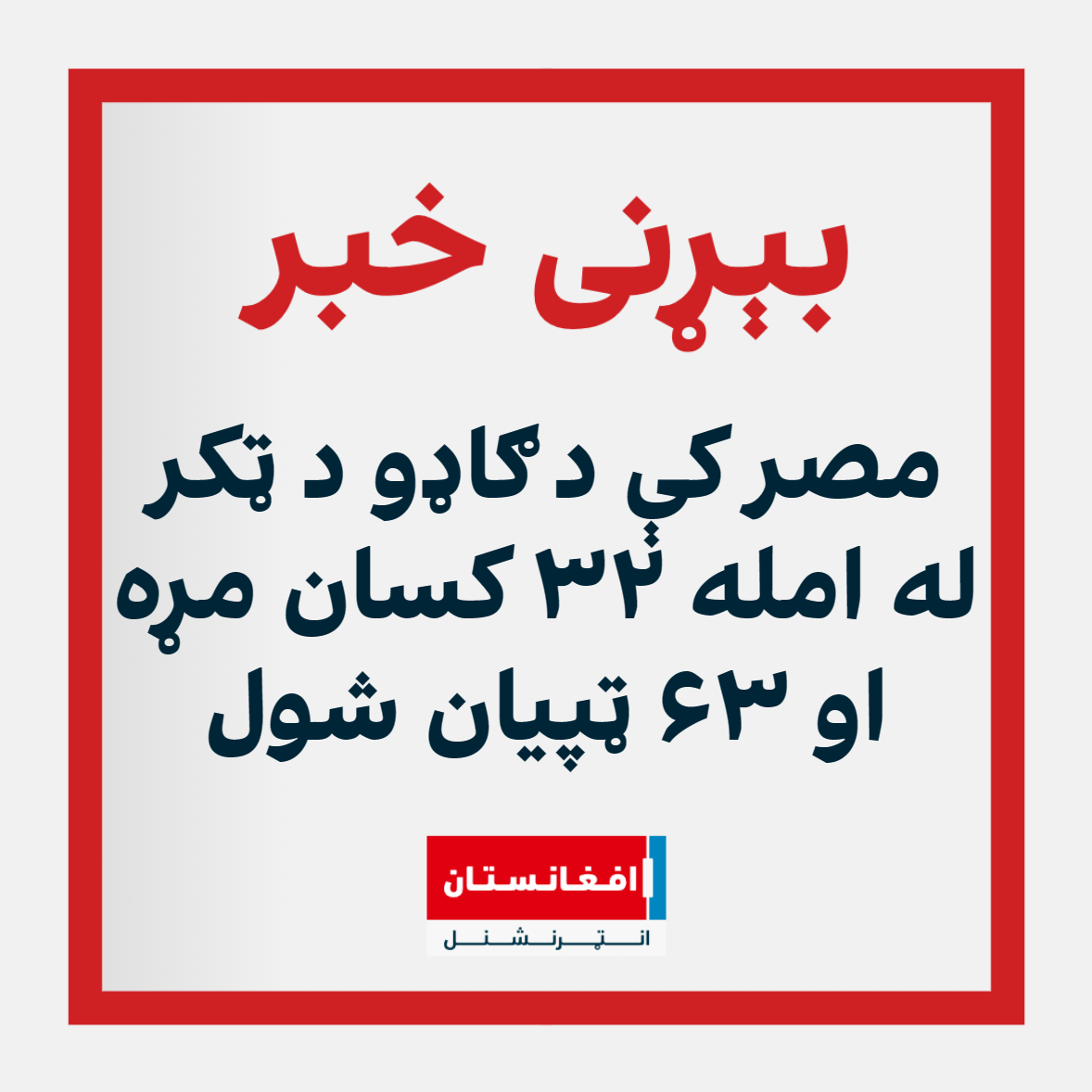 د مصر روغتیايي چارواکي وايي، په دغه هېواد کې د څو ګاډو د ټکر له امله ۳۲ کسان مړه او ۶۳ ټپیان شول.