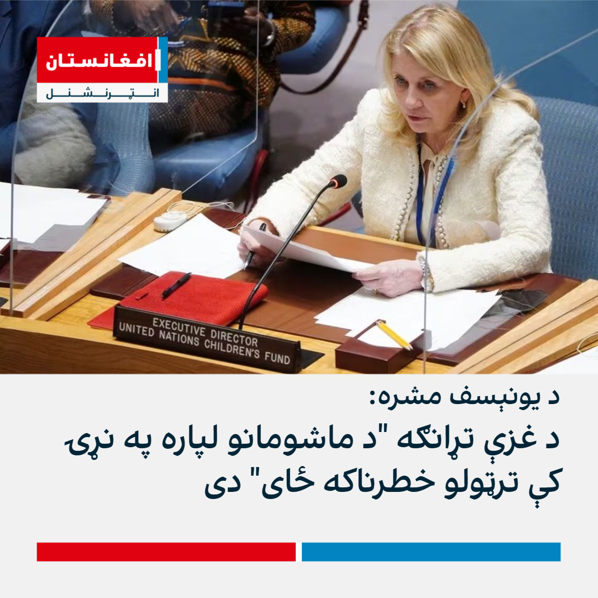 د ماشومانو لپاره د ملګرو ملتونو د وجهي صندوق مشرې کاترین رسل د چهارشنبې په ورځ د ملګرو ملتونو د امنیت شورا یوې غونډې ته وویل، چې د غزې تړانګه د ماشومانو لپاره په نړۍ کې تر ټولو په خطرناکه ځای بدل شوې ده.