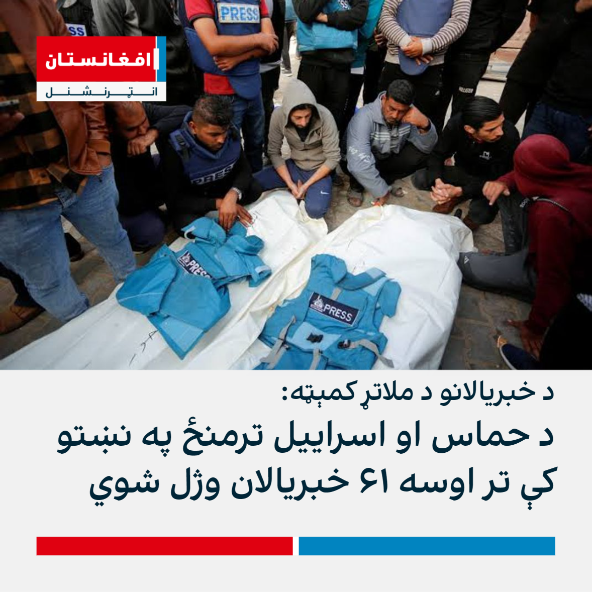 د خبریالانو د خوندیتوب کمېټې اعلان کړی، چې د حماس او اسراییل ترمنځ د جګړې له پیل راهیسې ۶۱ خبریالان او د رسنیو کارکوونکي وژل شوي دي.