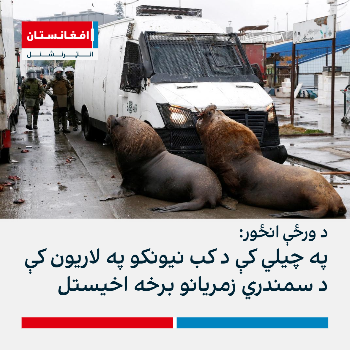 د چیلي هېواد په والپاریسو کې د پنجشنبې په ورځ (د ډسمبر په ۲۸مه) سمندري زمریانو د پولیسو د موټر مخې ته هغه مهال خڼډ شول چې پولیس له کب نیونکو سره په نښته کې و.