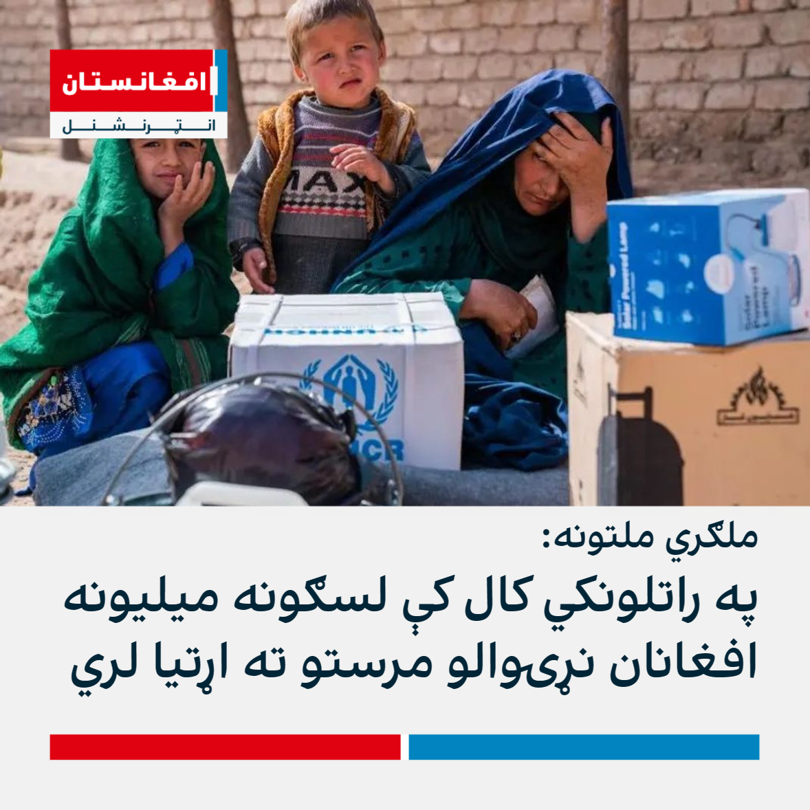 د کډوالو په چارو کې د ملګرو ملتونو عالي کمېشنرۍ اعلان کړی، چې په ۲۰۲۴ کال کې به ۲۴ میلیونه افغانان دننه او ۵.۷ میلیونه په پنځو ګاونډیو هېوادونو کې نړۍوالو مرستو ته اړتیا ولري.