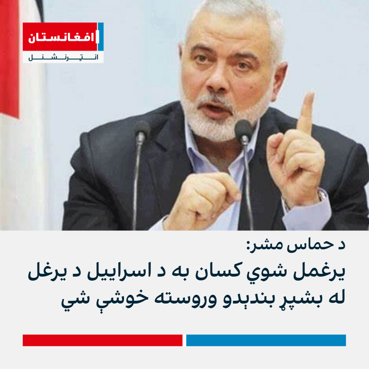 د حماس د سیاسي دفتر مشر اسماعیل هنیه وایي، چې اسراییلي یرغمل شوي کسان به د اسراییل د یرغل د بشپړ بندېدو وروسته خوشې شي.