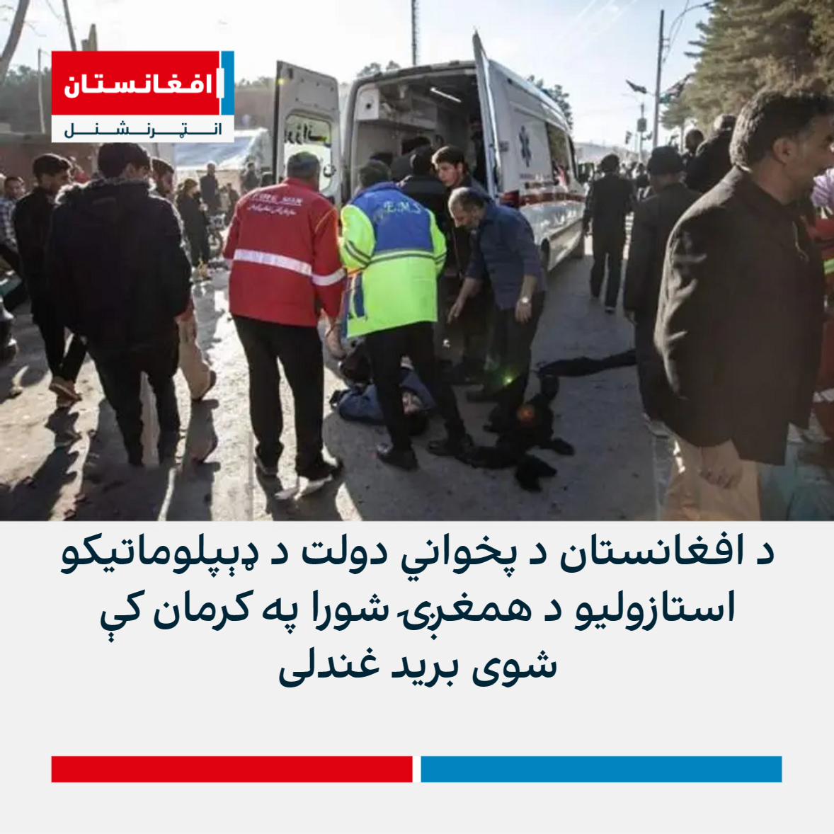 د افغانستان د پرځیدلي اسلامي جمهوریت د دیپلوماتیکو او قونسلي استازولیو د همغږۍ شورا د ایران په کرمان کې شوی ترورستي برید، چې تر سلو ډېر کسان په کې وژل شوي دي په کلکه غندلی دی.