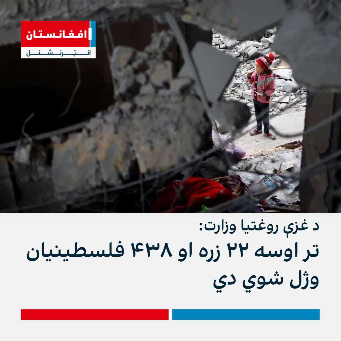 د غزې د روغتیا وزارت چې د حماس د حکومت تر کنټرول لاندې فعالیت کوي، د پنجشنبې په ورځ اعلان وکړ چې د غزې د جګړې له پیل راهیسې ۲۲ زره او ۴۳۸ فلسطینیان وژل شوي دي.