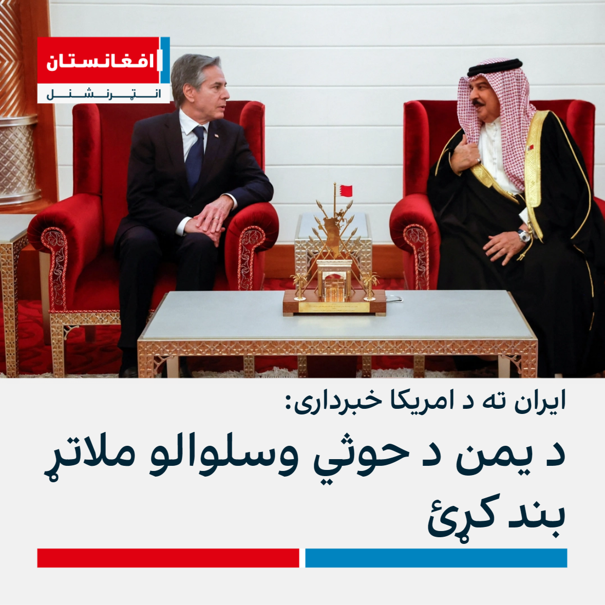 د امریکا د بهرنیو چارو وزیر انټوني بلېنکن د خپل سیمه ییز سفر په دوام بحرین ته رسېدلی او نوموړي په بحرین کې وویل، چې د ایران اسلامي جمهوریت باید د یمن د حوثي یاغیانو ملاتړ بند کړي.